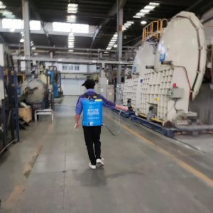 每天一早一晚,总能看到身背消杀设备的志愿者在厂区认真消杀,确保厂区的环境安全。
